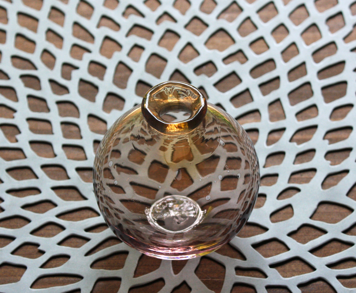 「空色の花挿し」は光や背景の色によって微妙に変化するガラスのグラデーション、そしてその影が魅力です。