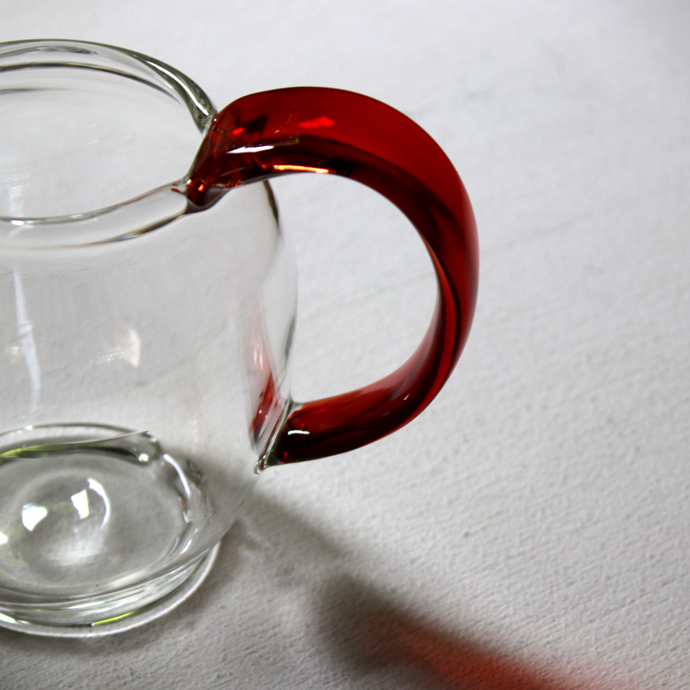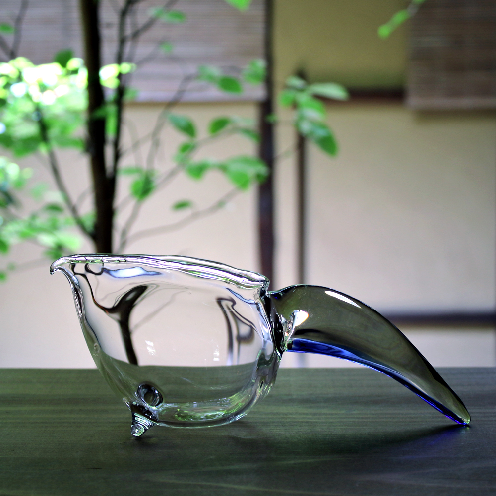 渡邊徳明さんの茶海(ピッチャー)2種のご紹介です。そのフォルムとクリアカラーの色彩の美しさ(その影も含めて)は秀逸です。また、注ぎ口から水が一切垂れないキレの良さも大きな魅力です。