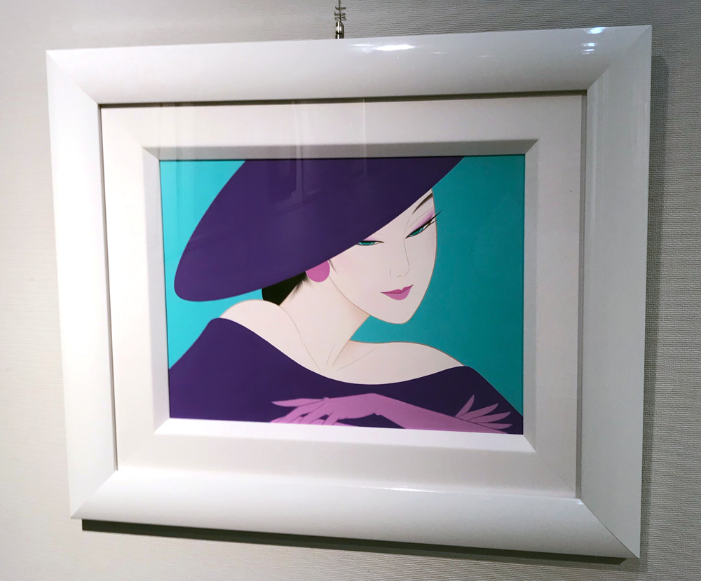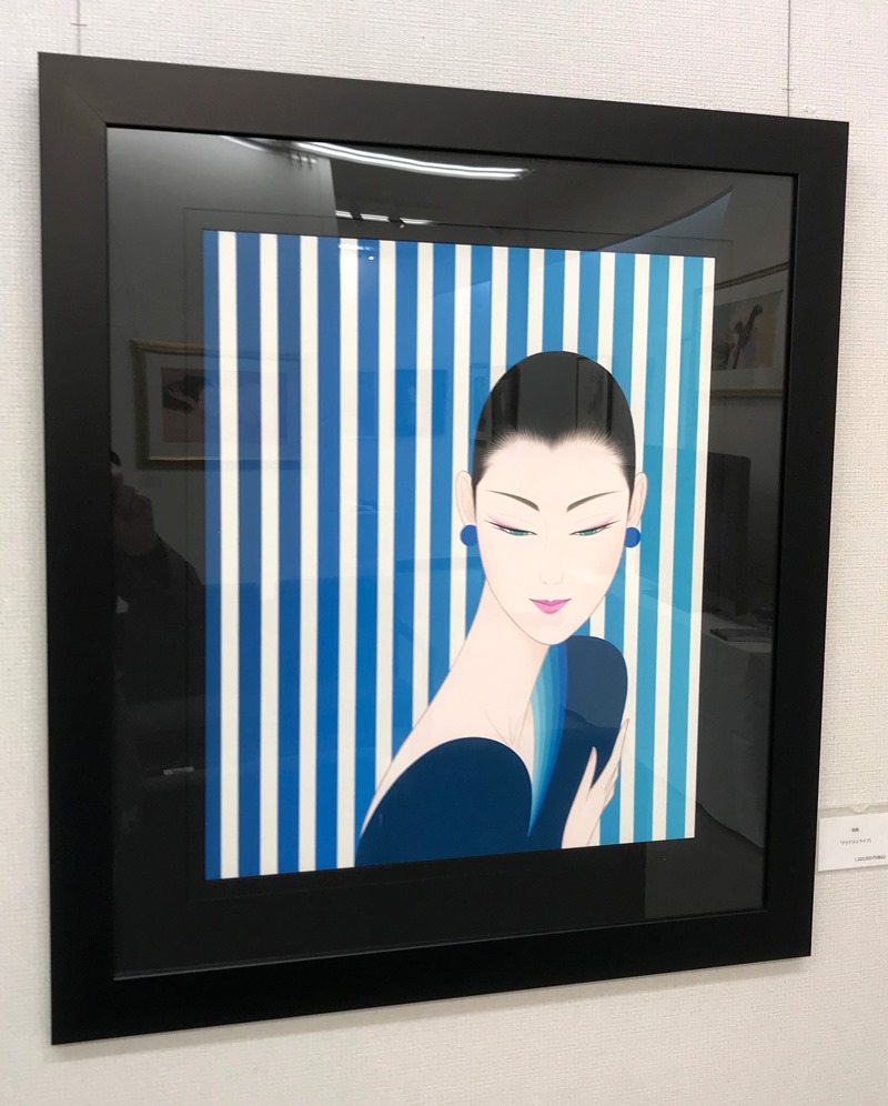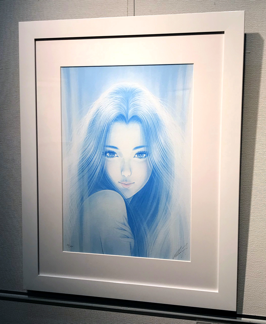 最新作原画「揺れる髪」の前で。