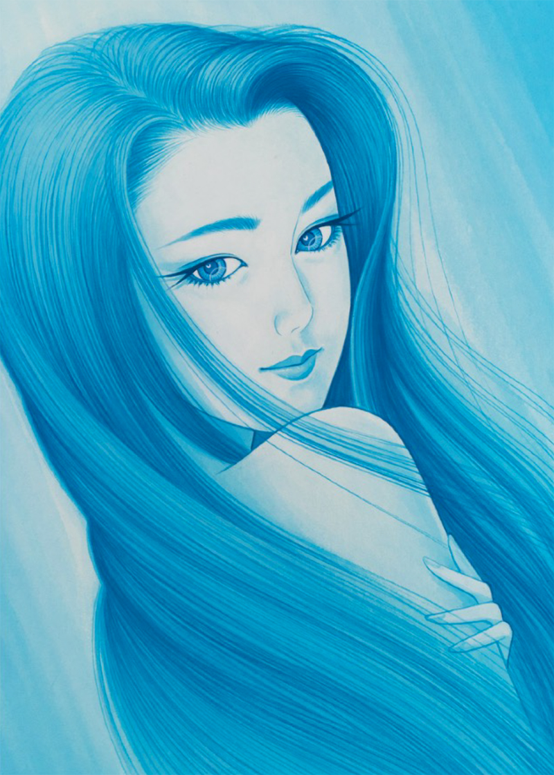 彼の描き出す美人画は、まさにアールデコのヨーロッパ的要素と自分の中の日本的なものが見事に融合し、たおやかで華やかな世界を創りあげている。1987年にはノエビア化粧品の広告に抜擢され、CMアートの先駆者として人気を博し、彼の作品の中の女性たちは多くの人々を魅了し続けている。