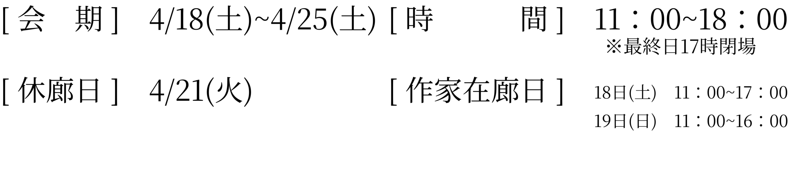 【時 間】11時 – 18時(最終日24日は17時まで)