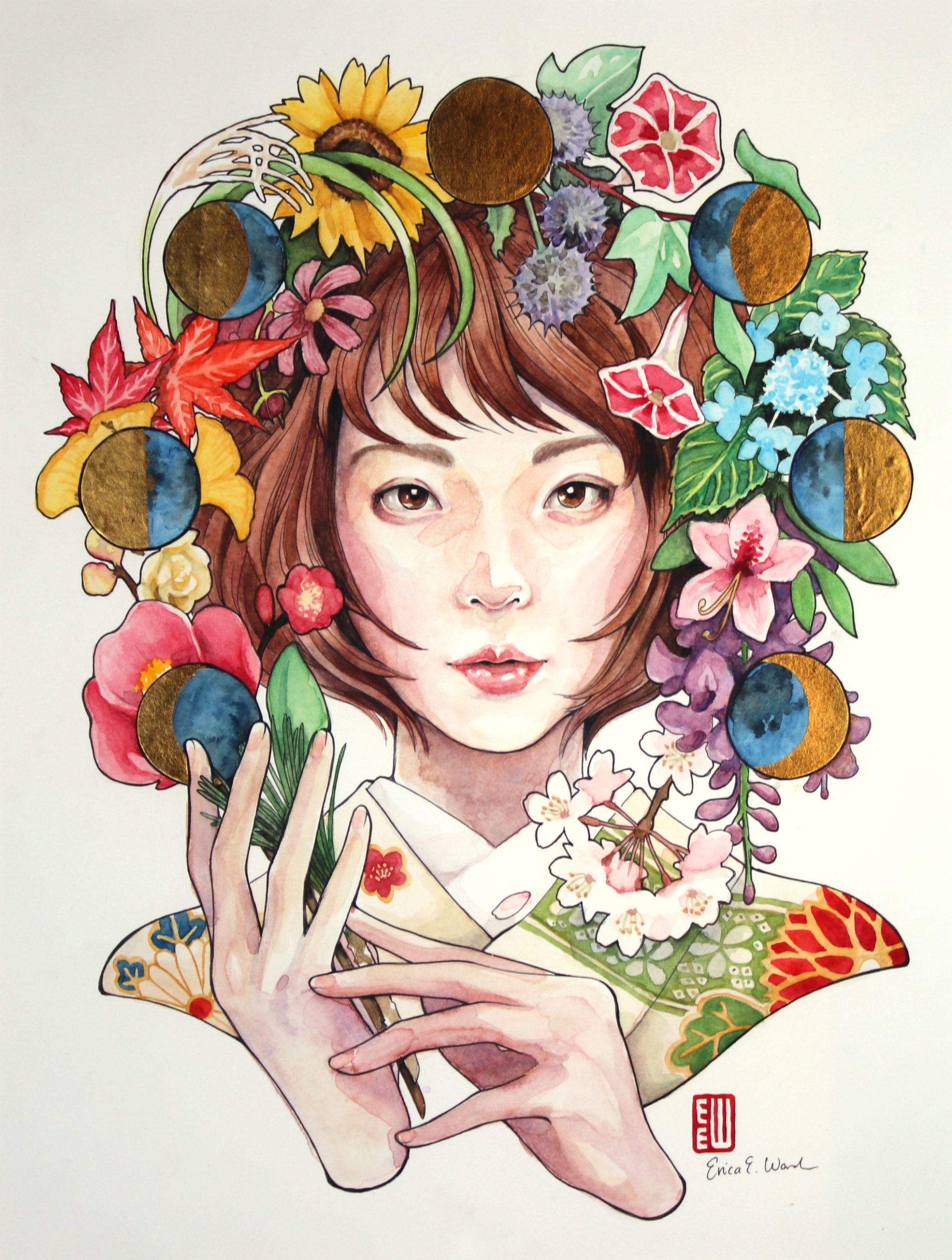東京でご活躍の画家・イラストレーター、エリカ・ワードさんの原画作品「年月 Toshitsuki」のご紹介です。
