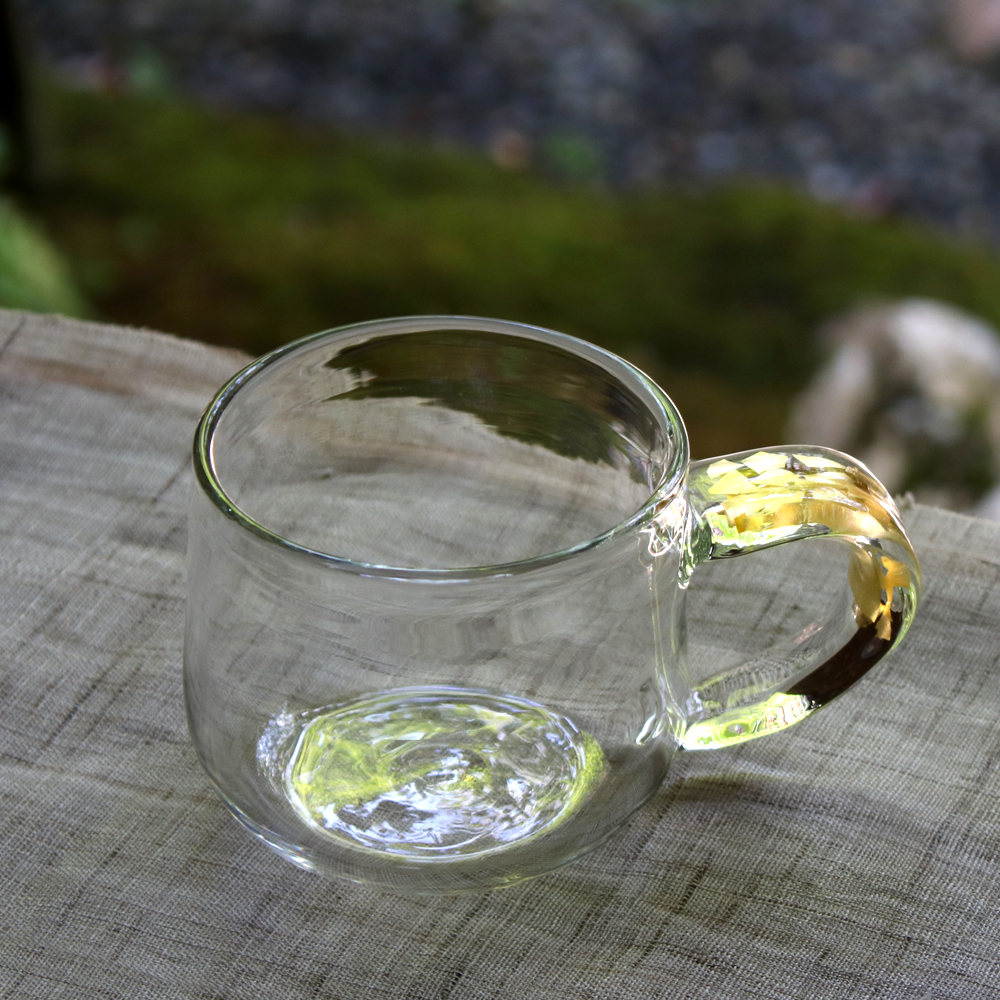 渡邊徳明さんの人気シリーズ「ひびき」、金箔を層にして耐熱ガラスの中に閉じ込めています。このサーバーは取手の部分に24Kの金箔が2層に散らされており、金箔同士が輝きあって、鮮やかで温かみのある光を放っています。ぽってりした軽量耐熱ガラスで割れにくく、欠けにくく作られておりますので、末長くお楽しみいただけます。