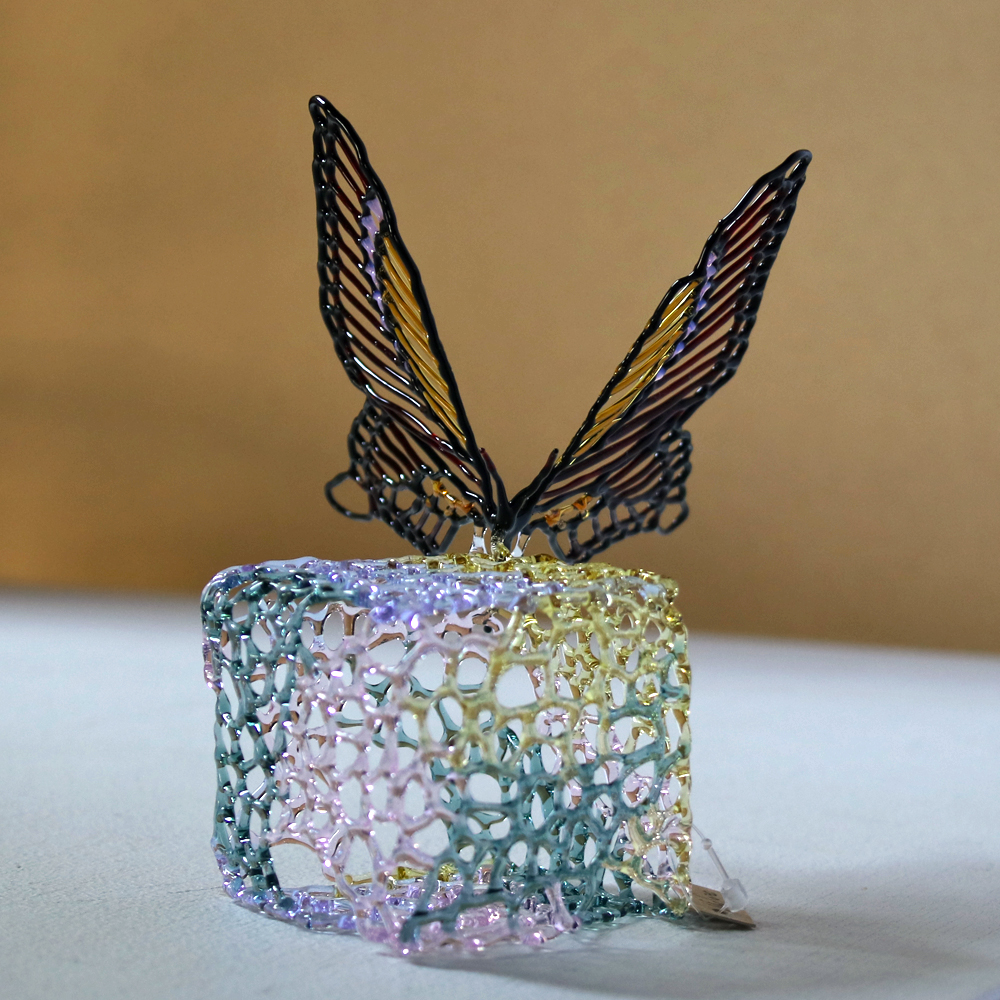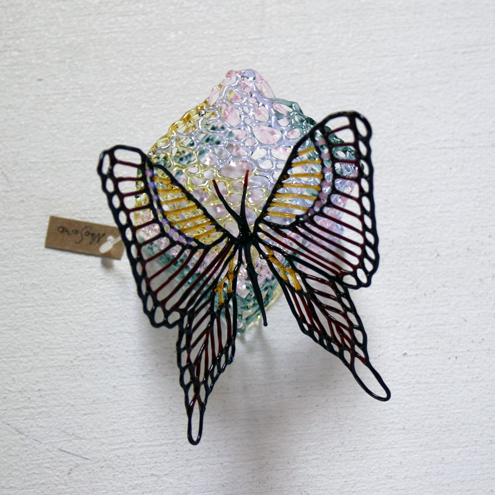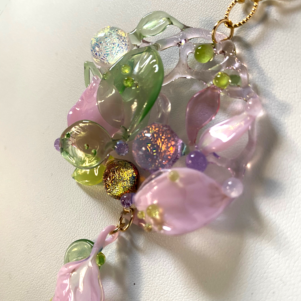 齋藤直さんはこの独自のストリンガーワークの技術を駆使した「HIRARI」という作品で2015年の第10回日本ランプワークソサエティ公募展の大賞(最高賞)を受賞されました。齋藤直さんの技術と感性は数多のガラス作家の中でも高く評価されています。