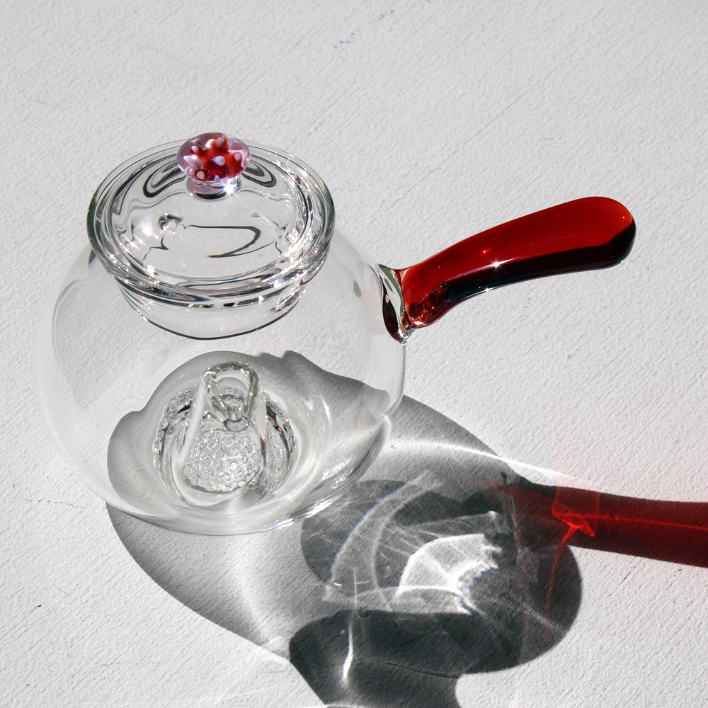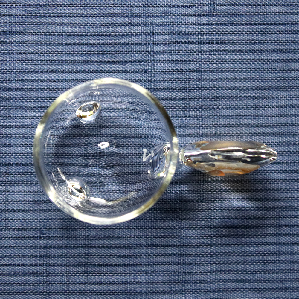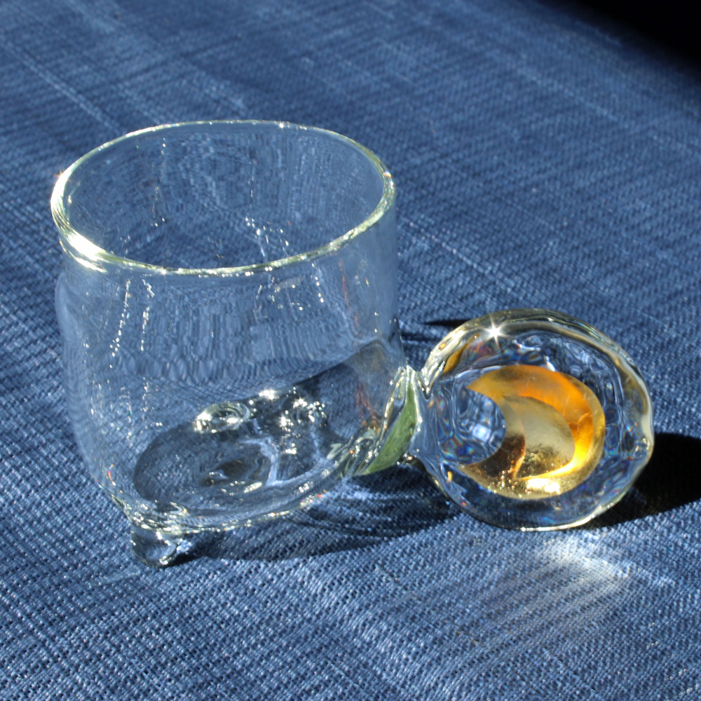 渡邊徳明さんの人気シリーズ「ひびき」、24K金箔を層にして耐熱ガラスの中に閉じ込めています。デミタスカップは底の部分に2層の三日月型の金箔が入っており、金箔同士が輝きあって、鮮やかで温かみのある光を放っています。ガラスの高い透明度も魅力です。割れにくく、欠けにくく作られておりますので、長くお楽しみいただけます。